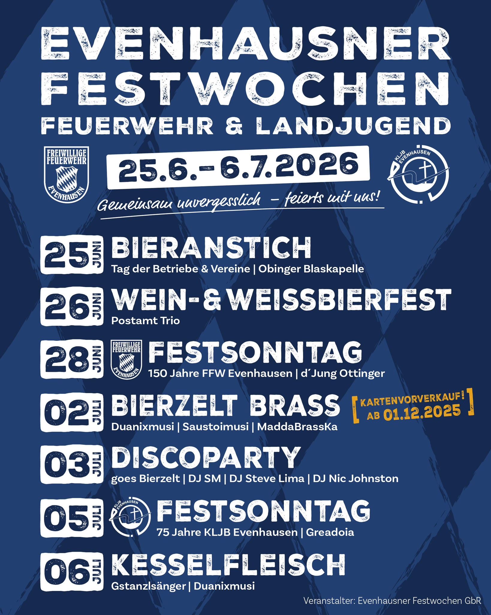 Vom 25. Juni bis 6. Juli 2026 finden in Evenhausen